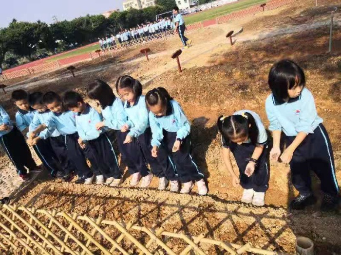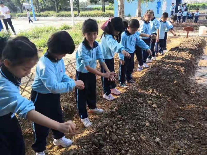 11月6日,稼穑园完成了基本的翻土,达到播种的条件。潘虹校长、白雪梅总务主任召集全部班主任到劳动基地进行班级责任田分工并且明确任务与要求。潘校长要求各班要加强纪律教育,引导学生爱护好劳动基地,积极参与劳动基地的建设。当天大课间,班主任组织全班同学认识了自己班级的劳动基地,孩子们兴高采烈地播下了格桑花种子并且浇水,这使学生一方面掌握有关劳动的技能,另一方面体验了劳动的快乐。