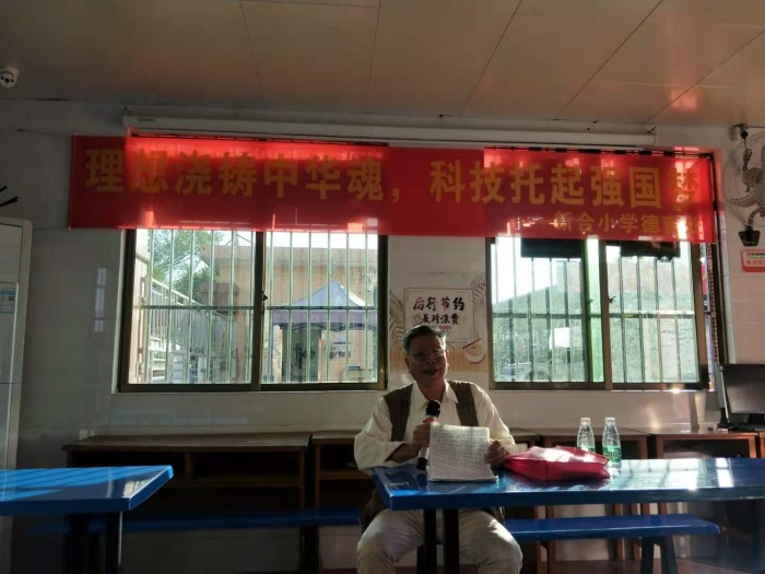 昂首奋进新时代,同心共筑中国梦。承着党的十九届五中全会胜利召开的东风。聚焦新目标,开启新征程。聆听着伟大祖国迈进新时代的凯歌。今天2020年11月12日,新合小学师生在这令人欢欣鼓舞的时刻。开展了“理想浇铸中华魂,科技托起强国梦”主题教育活动,主讲人是坦洲镇讲师团成员、退休老校长梁容福。