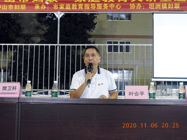 接着,坦洲镇永二小学校长叶会平发表讲话。讲话中,叶校长首先感谢家长一直以来对学校工作的关心与支持。接着,叶校长从学校基本情况、开学以来学校教育教学工作、学生思想政治教育、体育与劳动教育、学生心理、学生早餐、家校紧密合作、积分入学、市镇先进家长评比等九方面问题一一向全体家长作汇报与阐述。从叶校长的讲话中,广大家长可以真切感受到永二小学在上级党委政府与镇教育事务指导中心的关心支持下,学校办学环境不断改善,师资配备日趋完善。全体教师履职尽责,努力抓好教育教学常规工作,学生在校健康快乐成长。教学质量与办学水平逐年提高,办学特色初步彰显。家长对学校的认可度与美誉度持续升高。 学校将继续争取上级关心支持,也希望全体家长继续配合、支持学校做好家庭教育工作,家校全力,共同为孩子的健康快乐成长提供最优质的服务。