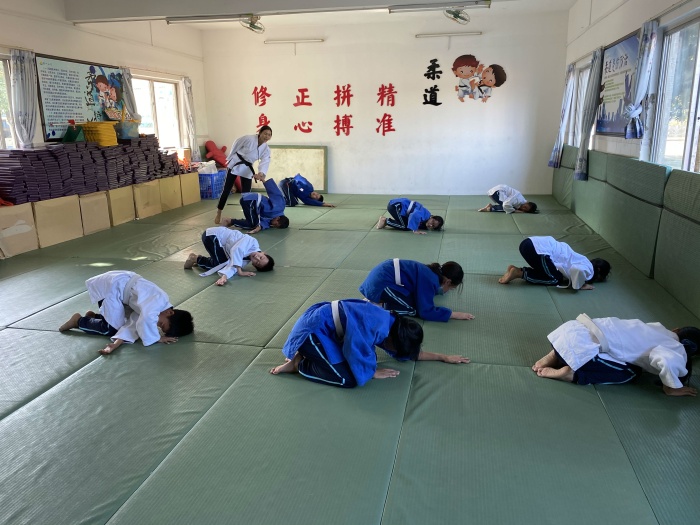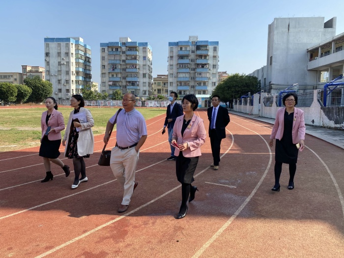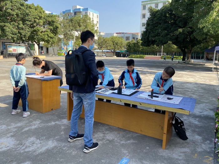 首先,评审组一行在联一小学潘虹校长等行政领导的陪同下,巡视了校园。观看了学校的传统文化橱窗、墙壁装饰、教师粉笔字展示、走廊文化、剪纸及书法作品展示、学校劳动基地“稼穑园”等。同时,专家们还观看了柔道、书法、剪纸、咸水歌、吟诵等社团活动的开展情况。