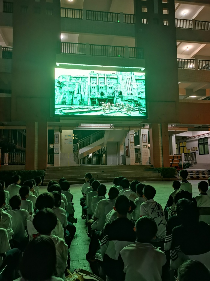 为加强爱国主义教育,激发学生爱国主义情感,丰富校园文化生活,11月19日晚上,吴剑文校长、黄金丽副校长带领全校1800多名师生,观看爱国主义电影《八佰》。