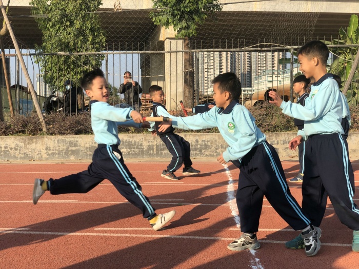星期一至星期四的年级组田径比赛,各班全部到场给参赛选手加油打气,“五1班,加油!”“四2班,加油!”的助威声响彻云霄。班主任和学生纷纷表示,这种比赛方式比以往集中比赛更鼓舞人心,更具观赏性。星期五下午简单的入场式之后,余壁峰校长致辞,他寄语孩子们每日运动一小时,健康幸福一辈子。