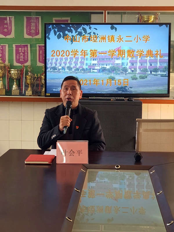 2021年1月15日上午,坦洲镇永二小学举行了期末散学礼暨法制安全教育讲座活动。校长叶会平,法制副校长温文辉出席了这次活动。