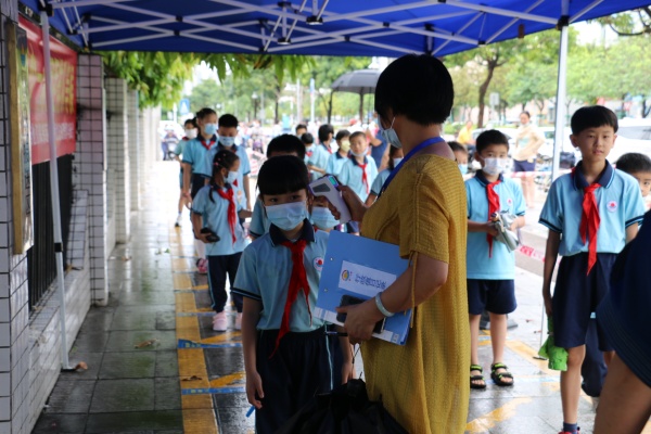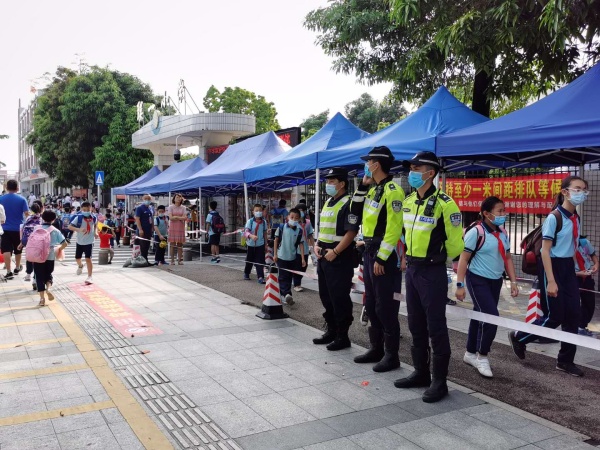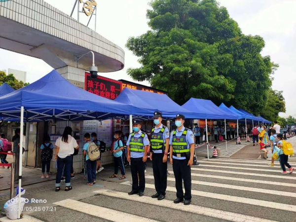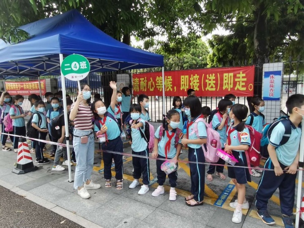 5月25日,随着第四批学生顺利返校,联一小学一至三年级同学怀着激动和喜悦的心情,重聚校园。返校复学的第一天,坦洲交警、学校全体行政、党员服务队、家长志愿队、值日教师、校医全体出动,全力维持学生错峰上(下)学秩序。校门口,同学们戴着口罩,相距一米有序排队,测量体温。进校门后,在老师们的指引下,洗手后再进入课室。学校还为每位学生精心准备了一份礼物——可爱的笑脸减压球,礼物虽小,但却给孩子们带来了温暖和愉悦。