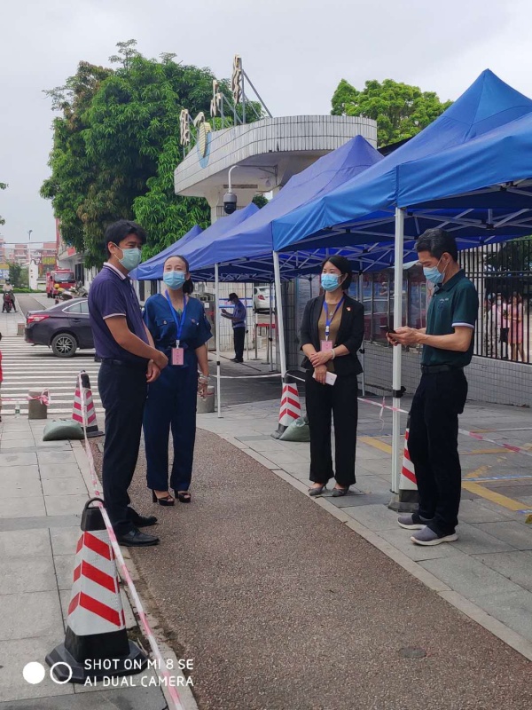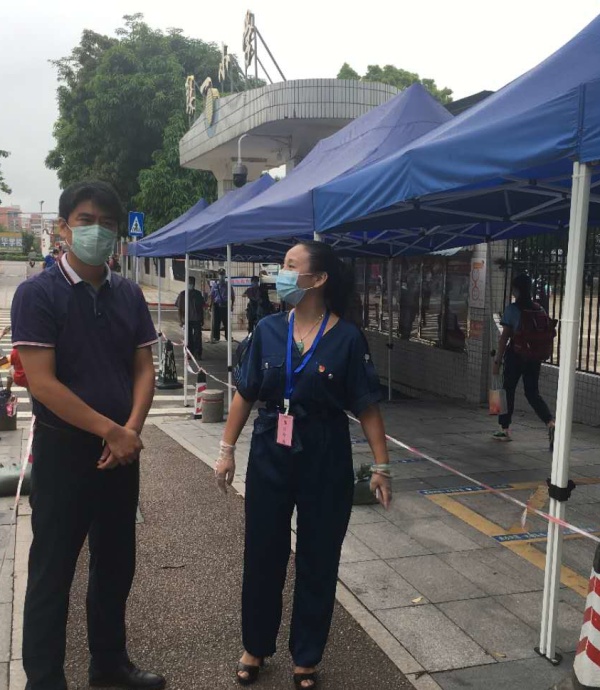 早上7时多,坦洲镇党委委员张光汉同志在坦洲镇教育事务指导中心副主任郑振宇的陪同下,再一次来到学校指导返校防控工作。疫情发生以来,张委员多次来到学校检查、指导学校防控工作,高屋建瓴指导学校开展布防工作,为师生提供了很多切实的指引和帮助。这次到校,他再次强调返校初期,防控工作不能有丝毫松懈,要将工作做细做实。特别要注重调整孩子们的心理状态,时刻关注学生群体的情绪变化,守好心灵防线,防患于未然。