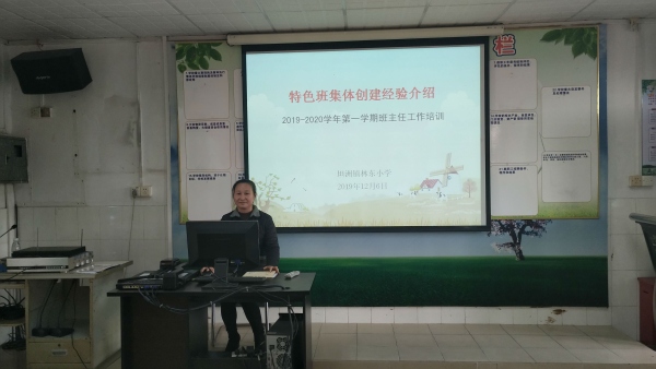 为了进一步提升班主任业务能力,深入推进班级特色创建工作,提升学校的特色班级创建水平,2019年12月6日下午,坦洲镇林东小学开展2019-2020学年第一学期班主任能力培训会议。会议由学习心得交流和特色班级集体创建工作的经验分享两个部分组成。林东小学副校长苏焕、教导主任叶秋玲、德育主任梁莲英及全体班主任参加了会议。