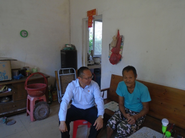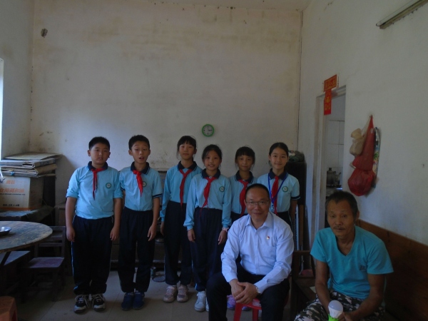 2019年11月15日,下午15时00,在前进小学党支部委员许思科副校长的带领下,大队辅导员郭瑞芬老师及少先队大队委7名队员,来到占涌村陈伯伯的家,进行慰问活动。