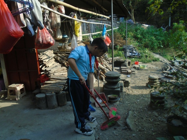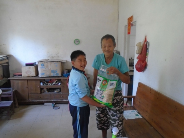 陈伯对学校党支部和大队部的到访感到十分高兴。队员们热情献上了为老人准备好的大米、食用油等生活用品。围着老人嘘寒问暖,陪老人聊天、讲笑话,还与老人分享了自己在学校发生的种种事情,房间里充满了欢声笑语,老人听得眉开眼笑。许思科委员还详细地了解了老人家的身体状况,希望老人家能好好保重自己。陈伯也鼓励队员们要好好学习,将来更好地为社会作贡献。接着队员们主动为陈伯打扫卫生、收拾屋子。陈伯看到孩子们如此孝顺、乖巧,深受感动。