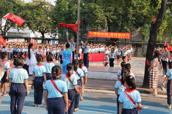 2019年10月1日是中华人民共和国成立70周年。为生动展示新中国成立以来的辉煌成就,唱响礼赞新中国、奋进新时代主旋律,9月30日上午,坦洲镇十四村小学举行主题为“礼赞新中国,奋进新时代”升国旗仪式及齐唱爱国歌曲活动。本次活动是一次爱国主义教育的生动实践,将进一步激发师生爱党爱国爱社会主义的情感,表达对祖国的深情祝福。