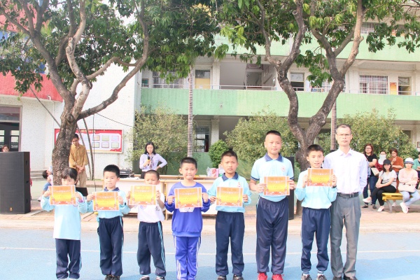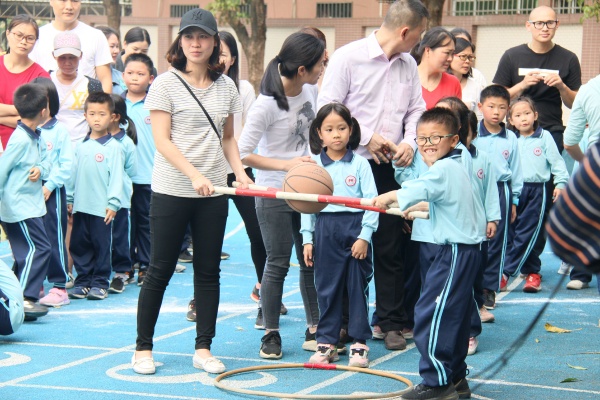 在下午举行的一、二、三年级的趣味运动会上。低年级的小朋友选手们反应灵敏,奋勇拼搏,伴随着一声声的加油声,他们全神贯注地尽全力为班级争光,场上的气氛紧张而又热闹。