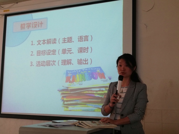 第四环节为坦洲镇英语教研组长卢云校长的微讲座《关于小学英语故事教学的聚焦点》。卢云校长在讲座中重申了故事教学设计的基本要求和设置不同程度的问题,理论与实践相结合,深入浅出地解释了很多高深的理论。