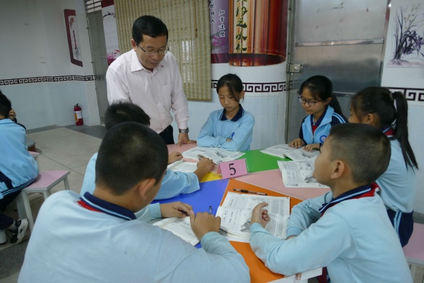 5月8日下午,市教育教学研究室中华优秀传统文化教研员林晓洁老师、三乡镇教育事务指导中心语文教研员王建国老师在坦洲镇教育事务指导中心德育专干张凯老师陪同下,到同胜小学进行传统文化教育教学调研。