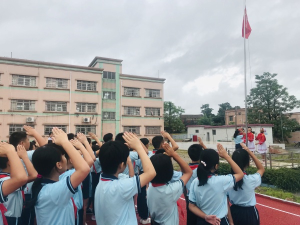 全体师生庄严肃穆地举行了新学期第一次升旗仪式。随着国歌响起,五星红旗随风飘扬,开学典礼就此拉开。伴着庄严的国歌,鲜艳的五星红旗冉冉升起,师生们的目光随着五星红旗的升起凝神注视着,他们的敬礼姿势是如此的端正,队伍仿佛成了守护祖国的一面墙。林芷琼同学铿锵有力的演讲再次把同学对祖国的自豪感激发出来,赢得在场师生的阵阵掌声,这个演讲让同学们明白爱国不是用口说的,要落实在身边的每件小事之中。范田华校长的讲话中谆谆教诲学生们谨记:有国才有家。范校长要求学生要自觉遵守法律,热爱祖国,感恩祖国,做个爱国懂感恩的好学生。范校长语重心长的教导让学生们明白一定要以祖国的利益为重发奋学习,成为祖国的栋梁。