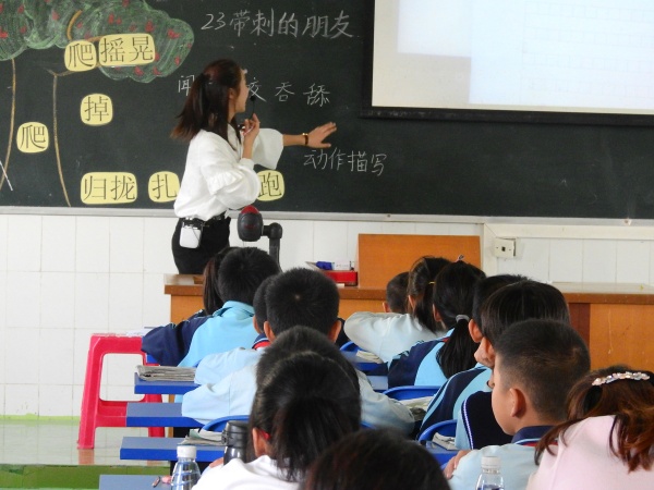 教研活动首先由坦洲镇永二小学三年级语文教师梁莹莹执教课文《带刺的朋友》。课堂上,梁老师生动的语言,亲切的笑容,学生朗朗的书声,响亮的话音,活跃了整个课堂。课程结束后,教研活动紧接着进入评课环节。评课中,梁莹莹老师就自己所执教的课文进行说课,各参会老师就梁老师的课分别作出评价。他们非常中肯地赞扬梁老师的课堂功底扎实,目标清晰,课堂生动,同时也给梁老师提出了宝贵的教学建议。然后他们就三年级阅读教学专题进行研讨。七村小学的李浩洁老师就《聚焦词句,感受语言的艺术魅力》作专题发言时提出三年级学段是关键的学段,知识容量大,学习难度加深,在该学段开展品读词句更加重要。她还介绍引导学生品读词句的好方法,一、创设情景,走进文本;二、抓住关键词,深入研读;三、在对比中品味词句。最后,坦洲镇语文专干梁北桥总结发言时认为这次的课题研讨主题定得很好。他指出体会、品味语言的魅力可以从多方面、多角度,需要广大语文老师多加琢磨。