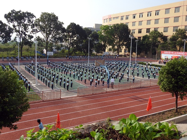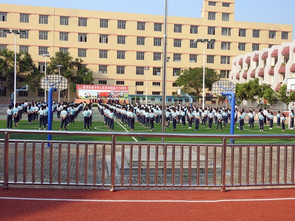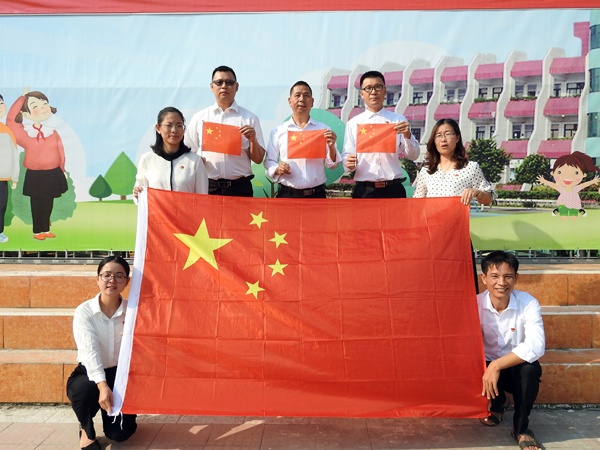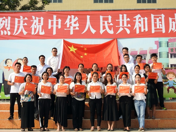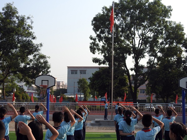 9月30日上午8:00,在振奋激昂的国歌声中,鲜艳的五星红旗徐徐升起。坦洲镇永二小学全体同学们排着整齐的队列高唱国歌。鲜艳的红领巾在胸前显得更耀眼。校长叶会平讲话中表示明天10月1日就是新中国成立70周年国庆节,在中国共产党正确领导下,国家富强起来了。在坦洲镇党委政府大力支持下,学校全新落成了塑胶跑道,这让校园环境变得亮丽,设备更齐全。同学们要好好珍惜今天幸福美好的生活,树立爱党爱国爱人民爱社会主义崇高思想;强身健体、热爱劳动,提高动手能力;努力学习,掌握科学文化知识,为祖国的伟大建设事业做出贡献。最后,校长带领全校师生一起深情呼喊“祖国,我爱您!”
