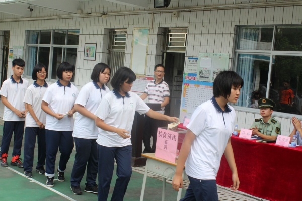 在典礼的最后,为了响应坦洲镇“扶贫济困,献出爱心”的号召,该校结合自己实际,还开展了“三中学子献爱心”活动,活动过程中,全校师生踊跃参与,献出自己的一份爱心。