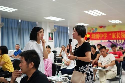 邓秀平老师跟家长分析初三学生的心理状态,紧张、焦虑、急迫、难以平静、自信、期待、兴奋是初三学生的典型特征。作为家长,在亲子沟通过程中,要明白考生的心理特征,掌握恰当的沟通方式。在处理亲子关系过程,家长一要处理好自己的情绪;二要营造良好家庭氛围;三要掌握适当的方法:如让子女放松、适当的压力、理解与支持孩子、共同面对问题。邓老师的讲座既有理论的讲解、又有师生互动;既有案例分析、又有游戏体验;既有困惑答疑、又有经验分享。