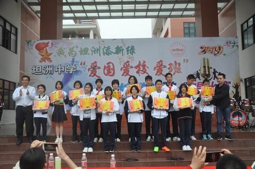 比赛进入高潮,坦洲中学吴剑文校长和镇关工委罗北成副主任为获奖的班级颁发奖状和奖品,并进行了总结性发言。在发言中,吴校长对在这次活动中付出努力和辛劳的每一位学生和老师表达了赞赏和感谢之情,并宣布“爱国、爱校、爱班”——坦洲中学初一年级校歌班歌合唱比赛圆满落下帷幕!