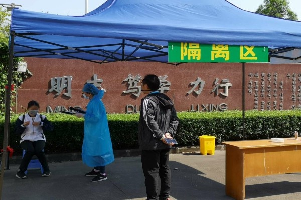 2020年4月13日下午,为应对即将到来的开学复课工作,中山市坦洲实验中学组织全体班主任、教师、后勤工作人员、保安员、宿管员、校医和全体行政,开展了“新冠肺炎防控应急演练”活动,针对开学复课后可能遭受疫情影响的各种突发情况,按照“全仿真、保安全、堵漏洞,快处理”的原则,模拟实际场景,演练工作流程。