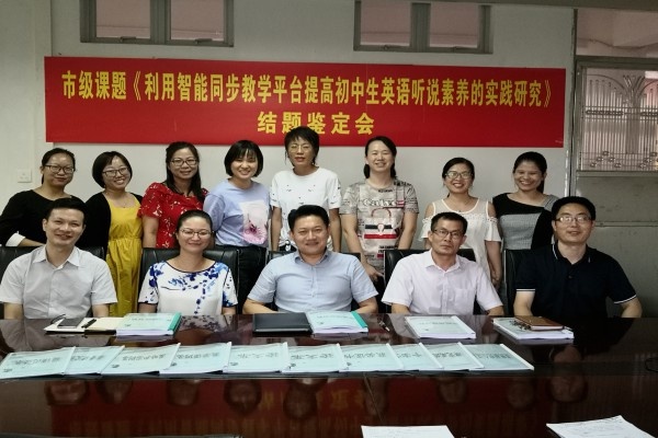 10月15日,坦洲实验中学杨艳梅老师主持的中山市教育科研2016年度规划项目课题《利用智能同步教学平台提高初中生英语听说素养的实践研究》在三楼会议室举行结题报告会。市教研室英语教研员张泰刚老师、方铁民老师、辛健老师,坦洲镇教育事务指导中心教研专干梁北桥老师、坦洲实验中学高艳玲副校长、东武军副校长和课题组全体成员参加了此次结题鉴定会。
