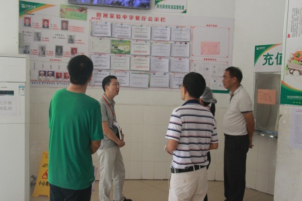 随后,张志略主任来到学校食堂,对食堂内外环境卫生、食堂员工个人卫生进行了仔细视察:对食堂储物间、食物制作间、分餐间、留样柜等进行了详细检查及问询;观看食品初加工、烹调环节,确保食物的干净卫生,保障各种用料的规范;对食堂食谱编制、原料采购索票索证以及各种日常记录表格进行了对照查看,强调学校食堂必须严把原料采购、加工制作每一关,做好蔬菜农药残留检测工作,保证师生用餐安全。