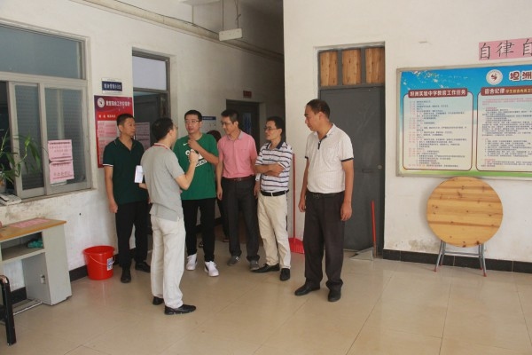 9月6日上午,坦洲镇教育事务指导中心主任张志略、德育专干张凯莅临坦洲实验中学检查指导安全卫生工作。学校梁格青校长、蔡权明副校长、王怀东主任和柳清泉副主任陪同视察。