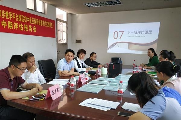 11月20日下午,坦洲镇实验中学市级教育科研立项课题《利用智能同步教学平台提高初中生英语听说素养的实践研究》的中期评估报告会在学校行政楼三楼会议室顺利召开。本次报告会得到市、镇专家及领导的大力支持,中山市教育教学研究室张泰刚老师、坦洲镇课题服务组成员高艳玲副校长、杜超主任莅临指导。参加报告会的还有坦洲实验中学梁格青校长和英语课题组全体成员。