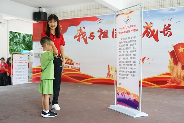 成长营开营仪式上,陈秀文校长发表了热情洋溢的讲话,她代表学校对家长和孩子们的到来表示热烈地欢迎,并介绍了一年级的正副班主任和各科任老师。接着,300多名家长和一年级新生庄严宣誓,响亮的誓言回荡在校园的每一个角落。