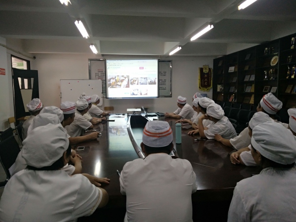 为了更好地落实上级工作,了解市直属学校食堂工作规范操作,2019年8月27日上午,汇翠学校全体食堂从业人员在小学部二楼会议室观看了《市直属学校营养配餐大赛食堂管理优秀案例视频》。