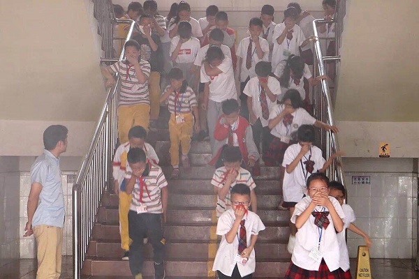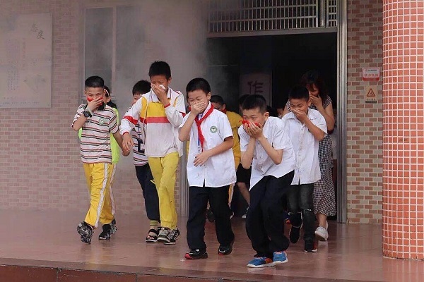 上午9:05,校园内火警警铃声响起,演练正式开始。各班主任及楼层负责人按照演练方案指挥学生进行撤离。各班学生在班主任的带领下,用手帕、纸巾或手捂着鼻子,俯身前进,迅速撤离到学校运动场。全体师生在整个疏散过程中做到井然有序、行动快速,配合默契。整个演练过程用时2分25秒,全校师生2300多人安全撤离安全区域。何伟华校长就本次疏散演练进行了总结,他强调了紧急逃生演练的重要意义,并对全体师生在演练中紧张迅速、安全有序的表现给予了充分的肯定,他要求全校师生今后要时刻“增强安全意识,珍惜自己的生命”。随后,政安防火宣传中心的李教官给全体师生进行了消防知识的培训。