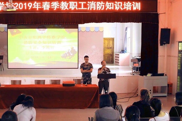 为了让广大师生深入地了解消防逃生技巧及安全知识,切实树立起消防安全意识,提高抗击突发事件的应变能力,2019年4月24日,中山市坦洲华特雅学校在政安防火宣传中心的指导下,全体师生开展了一次消防紧急逃生疏散演练,以及对全校教职工进行了消防安全培训。