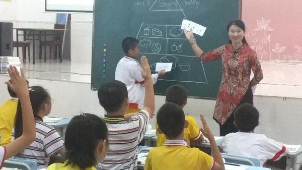2018年10月11日,坦洲卢云名师工作室主持人、坦洲合胜小学副校长卢云应邀来到华特雅学校,给老师们展示了一节精彩的英语示范课。卢云老师当节课的教学内容是六年级上册第三单元的阅读课《Unit 3 Staying Healthy (More Readig &Writing)》。上课前,卢老师以和蔼亲切的态度接近学生,很好地拉近了师生之间的距离。在课堂教学过程中,卢老师用饱满的热情去带动学生,引导学生在愉快、宽松的学习氛围下学习英语。凭借着一首“燃烧我的卡路里”的歌曲,全班学生迅速进入上课状态。卢老师播放的各种食物幻灯片,很好地贴近学生的兴趣,激活了学生的背景知识。在接近学生的语境下,卢老师还以她过硬的教学基本功,在黑板上画上了栩栩如生的蔬菜、奶酪和肉类,让学生更直观地理解阅读文本,完成课本上的习题。最后,卢云老师利用一个“自助餐”的餐盘活动,进一步进行教学延伸,学生反馈热烈,表现积极,进入了自然的学习状态,学习热情和学习效率得到了空前的高涨。
