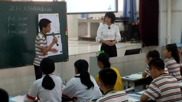 高艳玲老师当节课教学的是初中三年级数学《几何图形的最大面积》,整节课包括回顾思考、合作交流、拓广探索、方法归纳、课堂总结等几个环节。课堂教学过程环环相扣、逐步推进,通过充分的师生互动、生生互动,构建了一个平等自由的对话平台,全班学生处于积极、活跃、自由的学习状态。课堂上,教师通过设置巧妙的数学情境和课堂问题,充分调动学生的学习积极性和主动性,学生在合作交流中充分地表达、争辩,很好地锻炼了创新思维能力,学生真正成为课堂的主体,积极参与到教与学的互动过程中来,并在这个过程中实现知识和能力的双丰收。