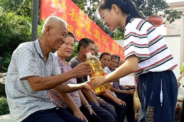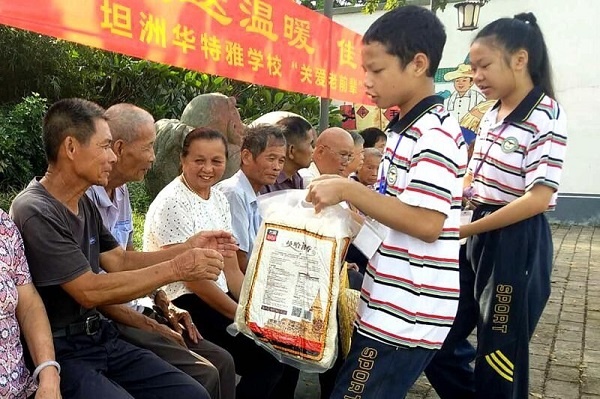 为了加强学生的思想品德教育,培养学生的社会责任感,继承和发扬中华民族尊老敬老的优良传统,2018年9月20日上午,坦洲华特雅学校组织了部分师生来到坦洲镇沾涌村,开展“中秋送温暖 佳节献爱心”的爱心公益活动。他们代表全校2600多位师生员工,为沾涌村的爷爷奶奶们送上中秋礼物,也给前辈们送上全校师生的关怀与祝福。