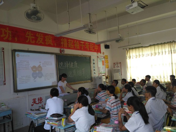 随后由各班班主任组织召开了“选择健康,远离烟草”主题班会,班主任老师从烟草在中国的流行、吸烟的危害、二手烟、戒烟的益处、戒烟干预的5A方案、烟草控制措施、烟草相关法律等七个方面为学生做了详细的介绍,让学生们更进一步了解到了吸烟不仅会危害自己的身体,同时也会给他人带来伤害。