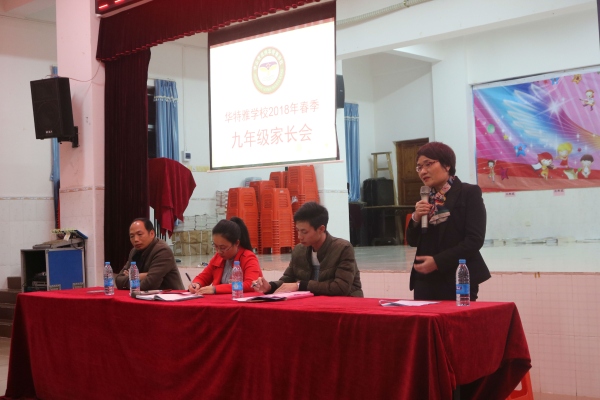 随着2018年中考临近,学校各项备考工作正紧密的进行,为了进一步提高初三备考工作的成效,促进家校之间的密切配合,共同做好学生的教育工作,3月9日晚,华特雅学校组织召开了初三毕业班家长会,初中部教务主任段银灯、德育主任邓财秀、初三全体老师及家长们出席了本次会议。