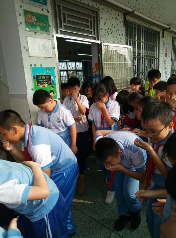 一阵急促的警报声拉开了“师生应急疏散演练”活动的帷幕。听到警报声,各位老师到达指定岗位,其他任课教师立即维护秩序,带领学生手捂着口鼻,弯着腰,沿着学校指定楼梯口快速前进,有序地撤离到学校操场的安全地带,随即各任课教师清点人数,并层层向上汇报。集结完毕后,德育主任对演练情况做了总结,提出在演练时的优缺点。