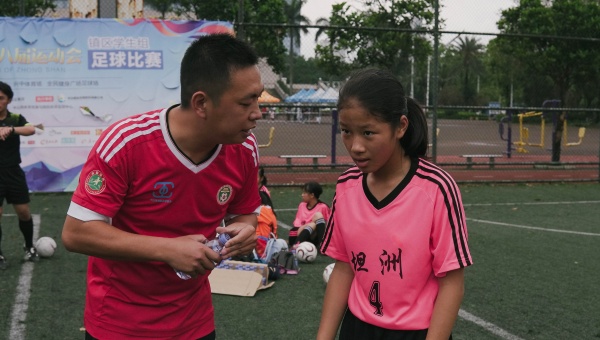 安阜小学女子足球队为代表的坦洲镇代表队,在所有参赛队伍里面,平均年龄是最小,个头是最小的,其中主力中9号队员是三年级的,5号队员是四年级的。在时间短、任务紧、项目多的情况下,坚持训练并取得优异的成绩,这离不开教练员林越国老师默默付出,也离不开队员们的刻苦训练和顽强拼搏。
