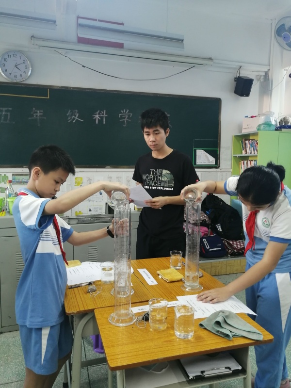 考核前,任教五年级的科学老师认真指导学生进行科学实验,学生的兴致高涨,除了在科学课上开展实验,课后也积极参加,每个实验每个学生操作起来都特别娴熟。