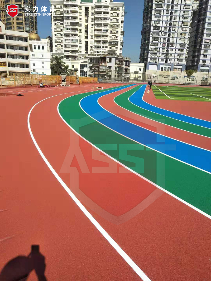 1、复合型塑胶跑道耐磨不脱粒,不易被鞋底和其他硬物刮伤。 2、安全性好,提高跑动速度并保护运动员脚踝,防止受到伤害。