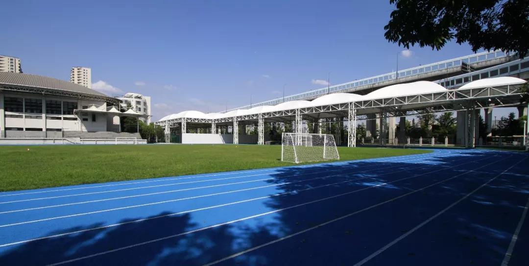 红色跑道变成了蓝色,和草地相映成趣,透着点小清新的味道,让人眼前一亮,瞬间感觉高大上了。