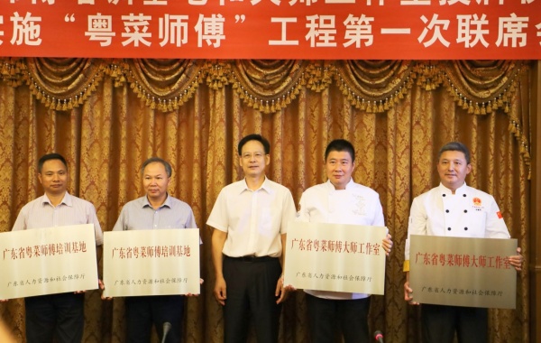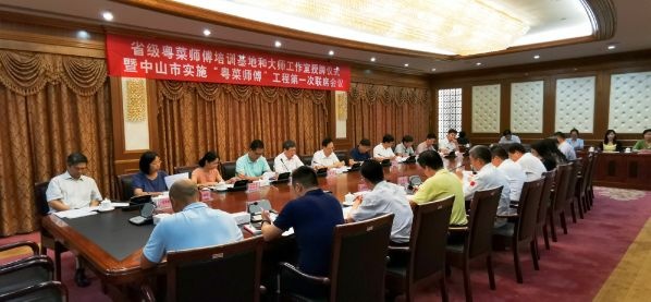 7月17日,中山市省级粤菜师傅培训基地、省级粤菜大师工作室授牌仪式暨中山市实施“粤菜师傅”工程第一次联席会议在市政府会议中心举行。市委常委、常务副市长杨文龙出席活动并向中山市三乡理工学校、中山市技师学院、市饮食业商会麦广帆会长、市饮食业商会郑耀荣副会长颁授“粤菜师傅培训基地”、“粤菜师傅大师工作室”牌匾。市委、市政府各职能部门相关领导参加会议,市教育和体育局副局长黎国喜参会并讲话。