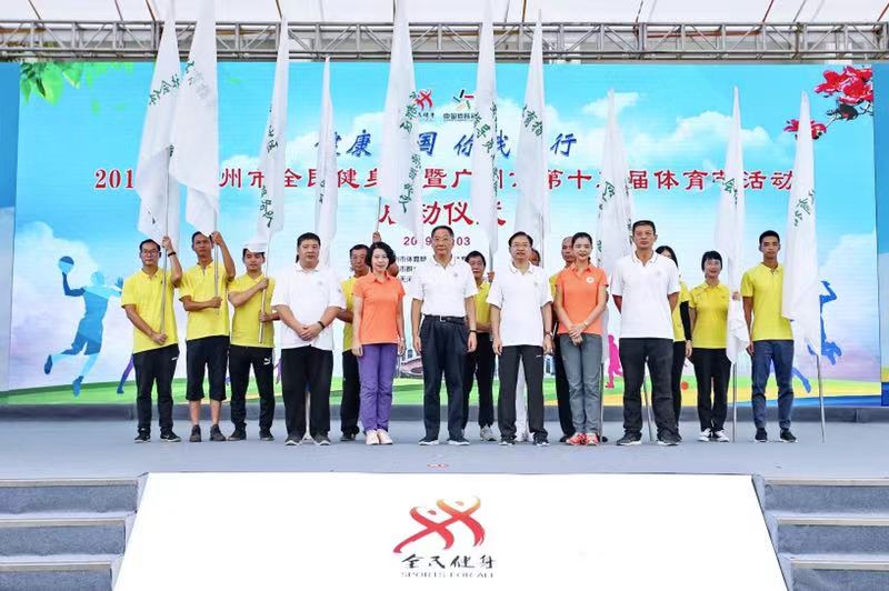启动仪式上,广州市政府副秘书长张建华为来自全市11区的社会体育指导员志愿者服务队代表进行授旗,并宣布活动开幕。广州市体育局、广州市体育总会领导分别为获得“2018年度市属体育协会年度考核5星级协会”和“群体通惠民服务示范场馆”颁发牌匾。