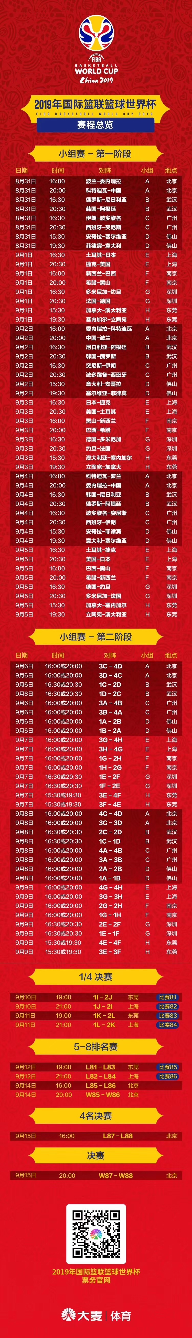 2019年国际篮联篮球世界杯将于8月31日至9月15日在广州等八个城市举办,这是中国历史上首次举办的顶级篮球赛事,也是2019年国际体坛最重要的体育盛事。根据抽签结果,广州赛区将承办C组西班牙、波多黎各、伊朗和突尼斯四支球队的6场小组赛及4场第二轮分级轮赛,共计10场比赛。