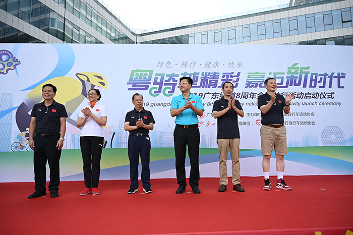 广东省黄村体育训练中心主任、广东省自行车运动协会主席蔡建祥,广东省体育局群体处处长钟志金,广州日报社编委、体育新闻中心主任陈伟胜,广州日报新媒体编辑部负责人、大洋网总编辑曹苏宁,广东省体育局群体处副处长杨英,广东省体育局青少年训练竞赛中心副主任姜永军,广东省自行车运动协会秘书长戚宇等领导和嘉宾出席启动仪式,并为骑行活动鸣笛发车。