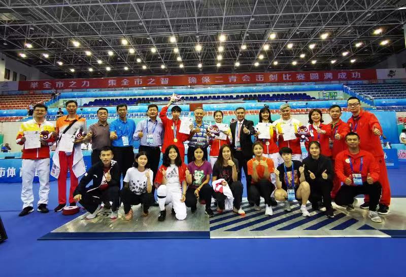 击剑赛场,来自广州体校运动员林可斯获得体校组女子佩剑个人冠军,同样来自广州体校的周乐尧获得亚军,广东青少体校余思铭15-12击败福建选手李志炜,获得体校组男子重剑个人冠军。