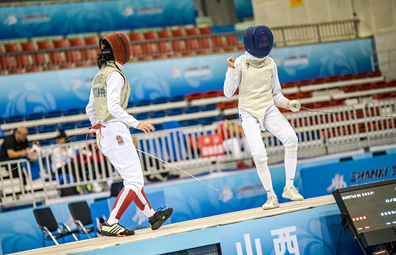 决赛当日,记者这早早守候在怀仁市体育馆,等待沈珏玲珑的登场,她将面对北京选手刘依阳。赛前,双方队员就位,沈珏玲珑笑容满面,身材纤细,斯文有礼,与“剑客”身份略有差异。记者了解到,击剑是她的爱好,她也更愿意用爱好维持对击剑的热爱。