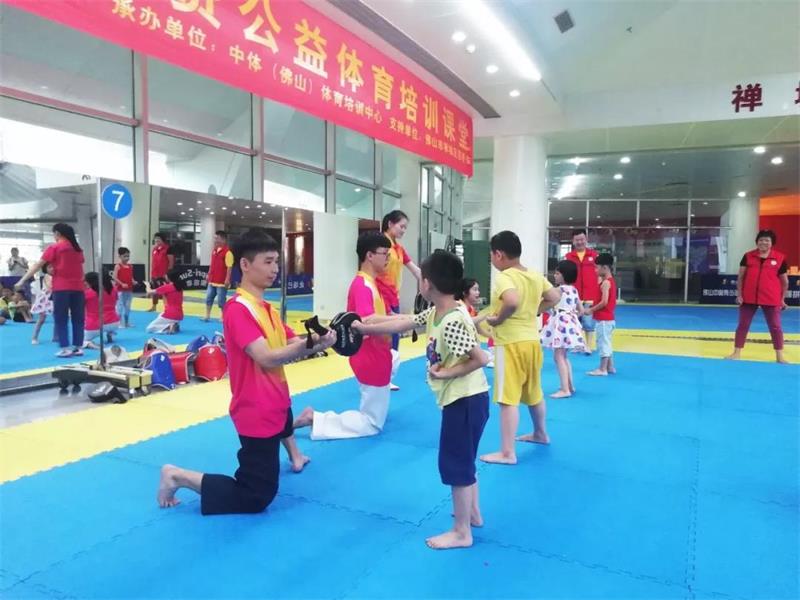 6月23日下午,“佛山体彩免费公益体育培训课堂”如期开班,共26名青少年免费参加了公益体育培训课堂。26名青少年都是由佛山市禅城区慈善会公开征集报名,为禅城区贫困家庭7—12岁的青少年。此次免费公益课堂是以跆拳道课程为主,主要授课内容为跆拳道的礼仪、精神、基础动作等基础课程。让青少年领悟礼仪、廉耻、忍耐、克己、百折不屈的跆拳道精神,学会互相尊重和友爱,努力使自己成为正直和有道德的人。