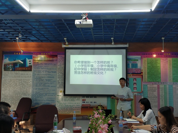 当天下午,徐淑萍老师以她丰富的学识、亲切的教态为新教师展开了一场别样生动的主题讲座《班级管理与班级文化》。开篇强调了“教育的根本目的是立德树人”,激励新教师朝着“四有教师”的目标迈进。徐老师主要从“班主任的角色定位、班级文化、家校沟通的技巧”这三个话题展开讨论,教导新教师如何做好班级管理工作,以及如何建设班级文化。期间穿插了两个互动小游戏,恰当好处地体现出教师教学专注力、班级团结、教学步入轨道等方面的相关特性,这为本次课堂培训增添了不少欢乐,勉励新教师在课堂授课时要做到灵活授课。接着是学员互动交流环节,新教师谈到了培训的心得体会以及今后的目标和努力的方向,镇教育事务指导中心吴雪仪老师还和新教师成员展开题为“你希望接手怎样的班级、制定怎样的班规、建设怎样的班级文化”的讨论和交流,思想的火花不断得到碰撞和升华。