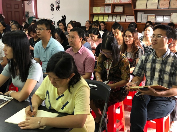 在谈到新学期的德育工作如何开展时,阮秀迎老师要求各校各幼儿园要始终坚持落实立德树人为中心 ,依托《中小学德育工作指南》,做到“重点工作跟到位,常规工作抓到位”,利用中华人民共和国成立70周年、教师节、中秋节等重要时间节点,积极探索“六育人”的校本途径,在师生中弘扬和践行社会主义核心价值观。同时就进一步抓好预防未成年学生性侵、加强心理健康教育、创文、民办德育督导、德育特色创建、团队建设等展开部署。号召全体沙溪德育人积极总结和传承“德育导师制”、“德育常规精细化管理”、“爱校教育”、“一普访五多访”、“影视教育”等沙溪德育好经验、好做法,在新的学年把沙溪德育做精做细做实,做出特色和品牌。